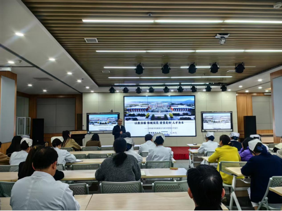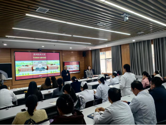 本次培训由医院管理处处长兼教务处副处长左临轩带队,教务处考务科副科长刘瑜等共同参与。第二附属医院院领导、临床医技、护理骨干师资等100余人参加培训。