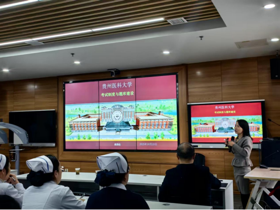 教务处考务科刘瑜副科长聚焦《考试制度与题库建设》,从学校医学题库建设及应用、命题的科学性、组卷的策略性等的应用等方面分享了经验,对提升附属医院考试考核提出了要求。